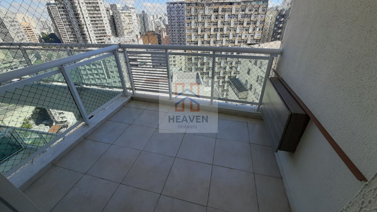Apartamento ensolarado com 48 m², tendo 01 dormitório suíte, armário planejado, living para 02 ambientes, sacada, lavabo, cozinha com armários planejados, área de serviço e 01 vaga de garagem. Condomínio com Lazer Completo e Portaria 24hrs. Próximo a Supermercados, Bancos, Escolas, Universidades, Shopping, Teatro, Praças e todo comércio que a região oferece. Fácil acesso as estações do metrô República e Anhangabaú, Avenidas Nove de Julho e São Luís. Agende sua visita ou veja mais opções no site www.heavenimoveis.com