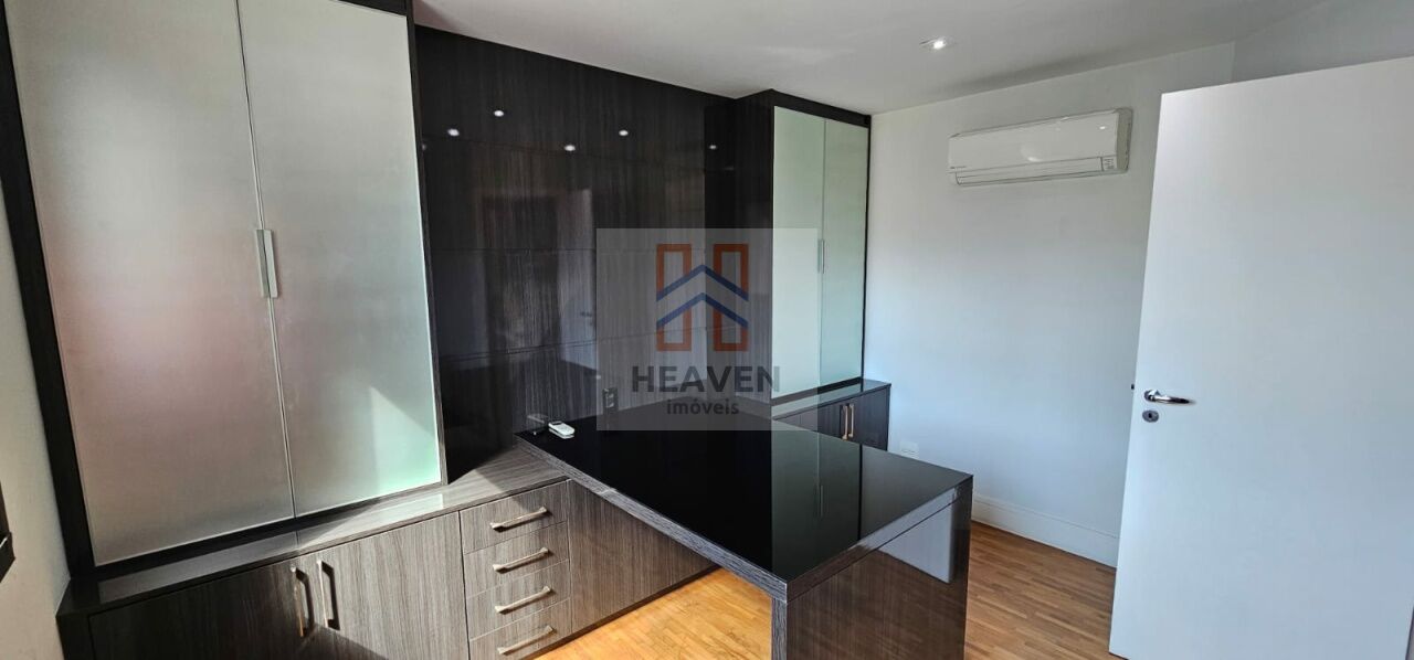 ? Amplo escritório com muitíssimos armários e mesa feitos sob medida de marcenaria e material de altíssima qualidade;